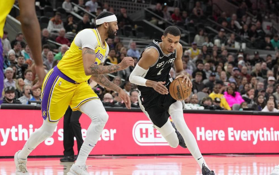 籃球直播吧12月14日訊 NBA常規賽,客場作戰的洛杉磯湖人以122-119擊敗圣安東尼奧馬刺,馬刺遭遇18連敗。戴維斯37分10籃板1助攻,文班亞馬30分13籃板2助攻。