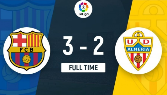 西甲第18輪,巴薩主場對陣阿爾梅里亞。上半場,阿勞霍頭球攻門被撲,拉菲亞補射破門。隨后阿勞霍失誤,巴普蒂斯塔為阿爾梅里亞扳平比分;下半場,拉菲尼亞角球助攻羅貝托頭球破門。佩尼亞被阿勞霍撞翻造成脫手,埃德加打進空門。萊萬助攻羅貝托再次超出,佩尼亞終場前貢獻關鍵撲救。最終,巴薩3-2戰勝墊底的阿爾梅里亞,終結聯賽2輪不勝&各項賽事3場不勝,先賽一場落后暫時榜首的赫羅納6分。